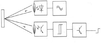 發(fā)送器對準目標發(fā)射光束,發(fā)射的光束一般來源于半導(dǎo)體光源,發(fā)光二極管(LED)、激光二極管及紅外發(fā)射二極管。光束不間斷地發(fā)射,或者改變脈沖寬度。接收器有光電二極管、光電三極管、光電池組成。在接收器的前面,裝有光學(xué)元件如透鏡和光圈等。在其后面是檢測電路,它能濾出有效信號和應(yīng)用該信號。